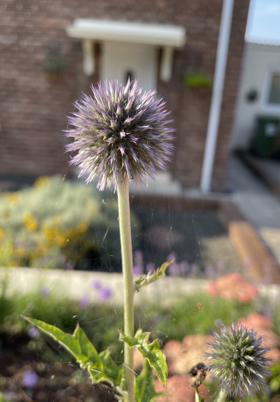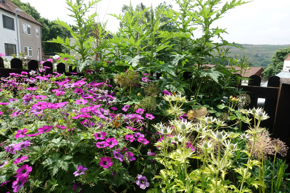 Eryngium Nepture's Gold - Echinops Tianschanicus background its a monster plant with tennis ball size flowers , I dug it up last autumn and need to rehome it somewhere .