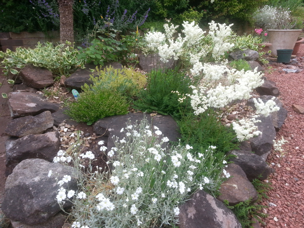 Cerastium Tomentosum which I prefer for it's silver foliage & Filipendula Vulgaris together in what was a rockery back in 2018 and now my new rose bed.