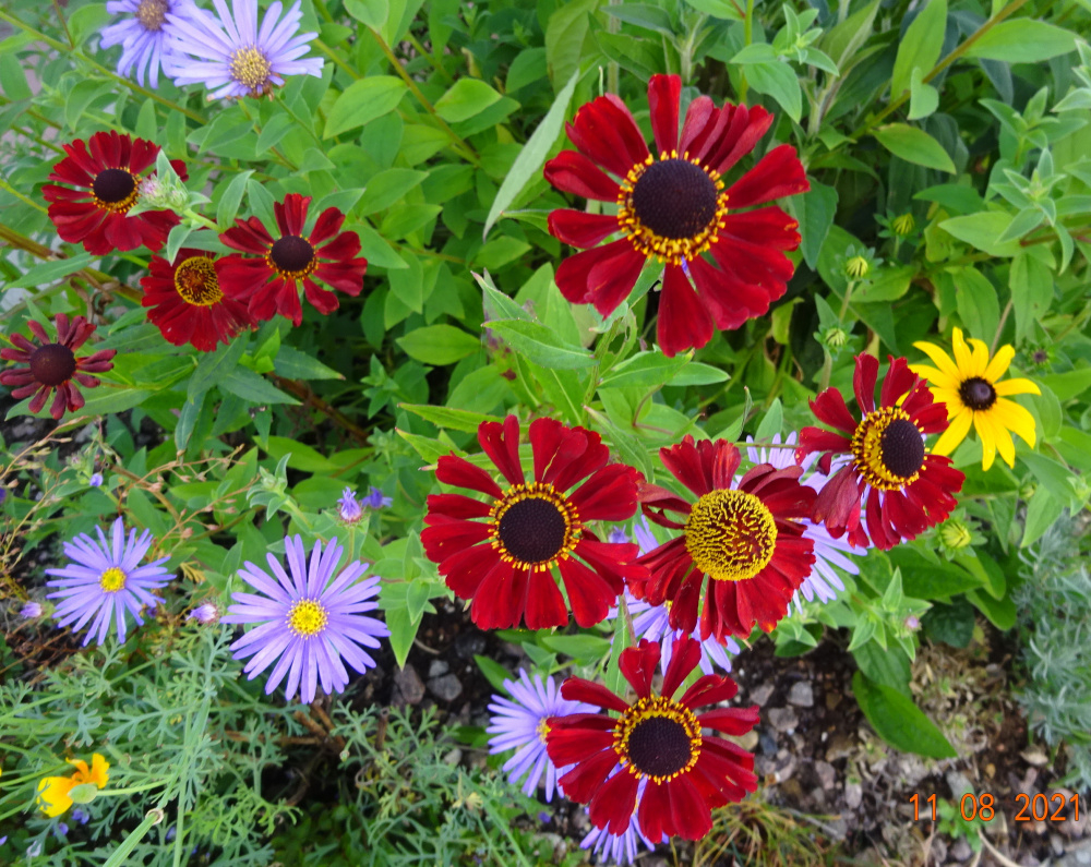 Helenium 'Rubinzwerg' is redder, but fades to a brownish/orange.