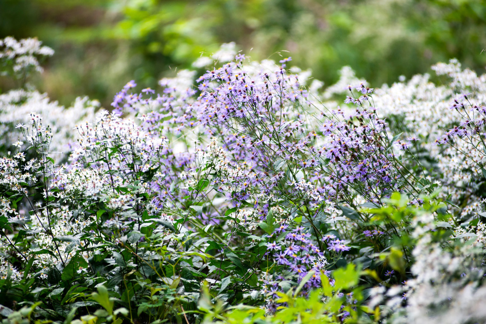 Here are another couple of 'E's - Eurybia x herveyi (with E. divaricata) at Trentham, and Eryngium yuccifolium in my garden.