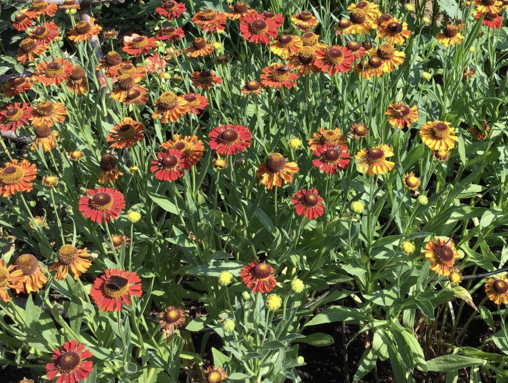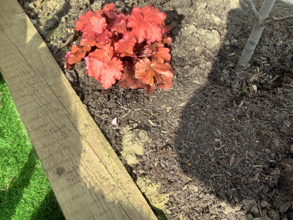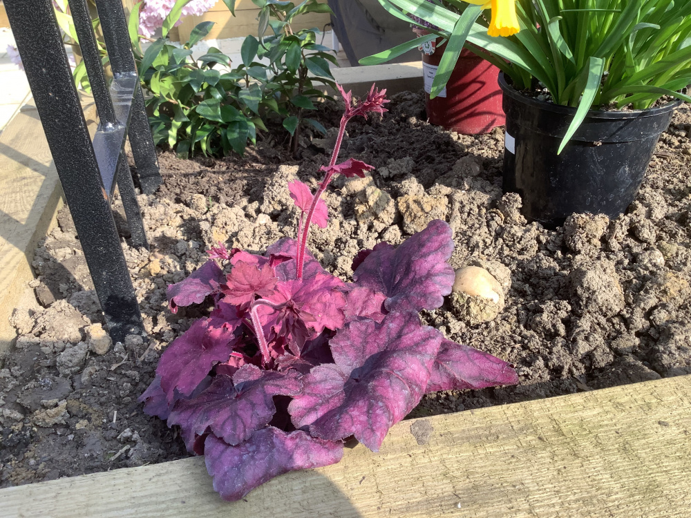 I'm enjoying Heuchera Fire Chief, though I don't have good pics of it. The favourite of the H I have. Great for cut flowers. And bees love them all, I think.