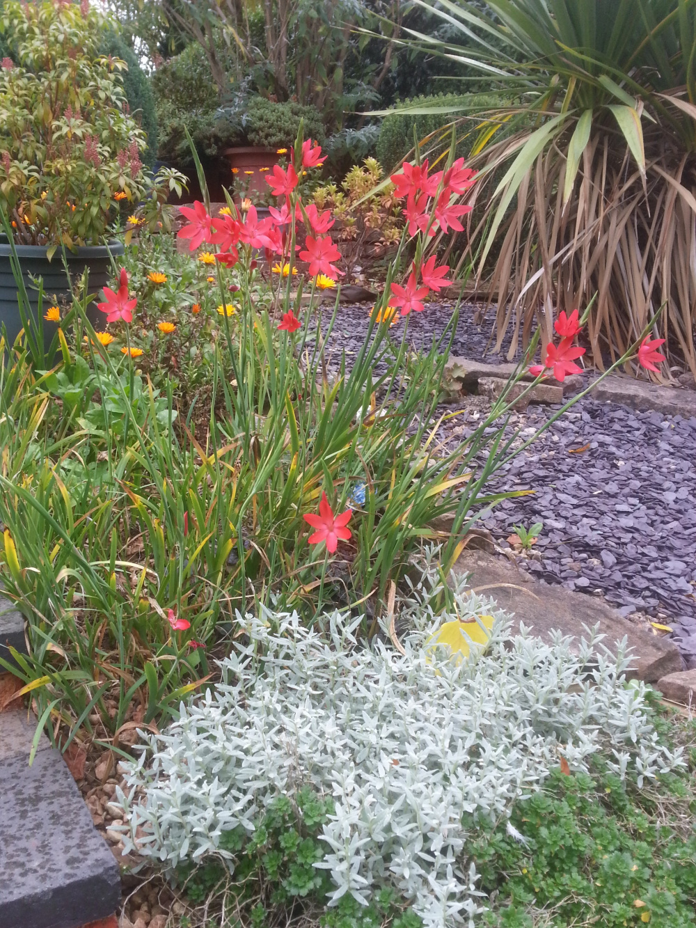 Hesperantha Coccinea, Kaffir lily / flag lily For a late bright lift amongst autumnal tones. This pic in mid Oct Foliage and stems look scruffy following flowering though