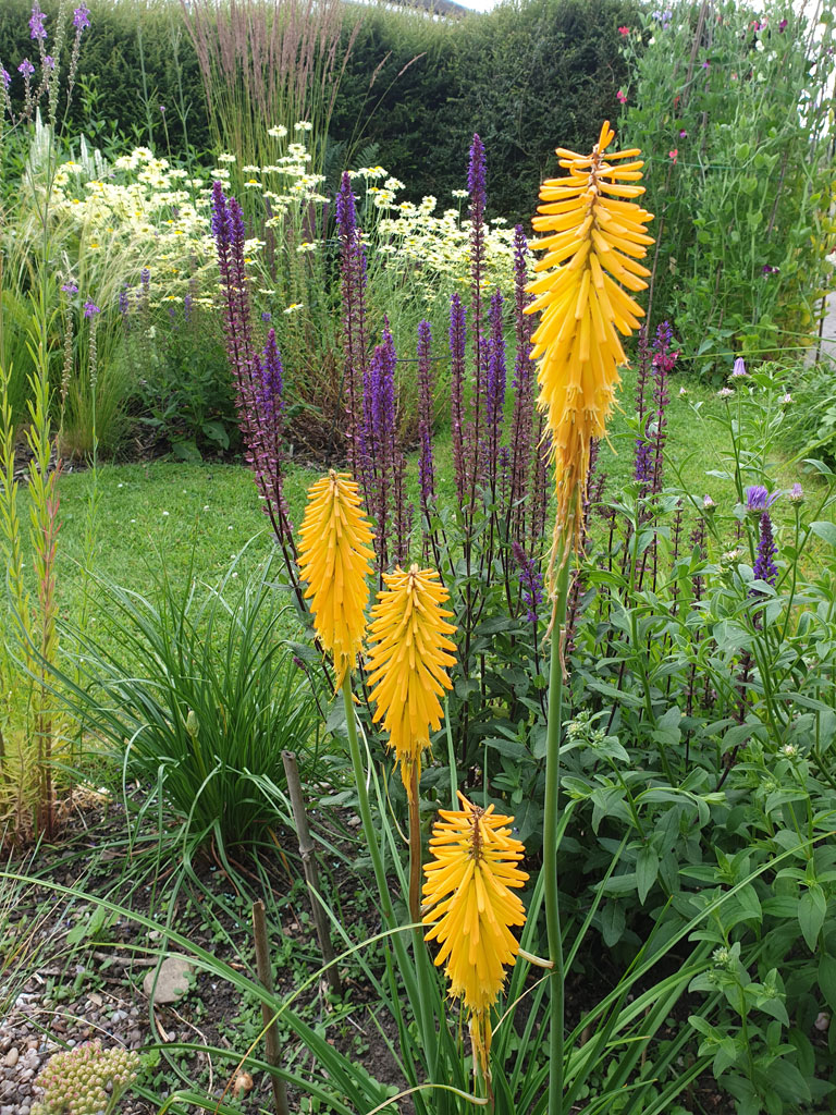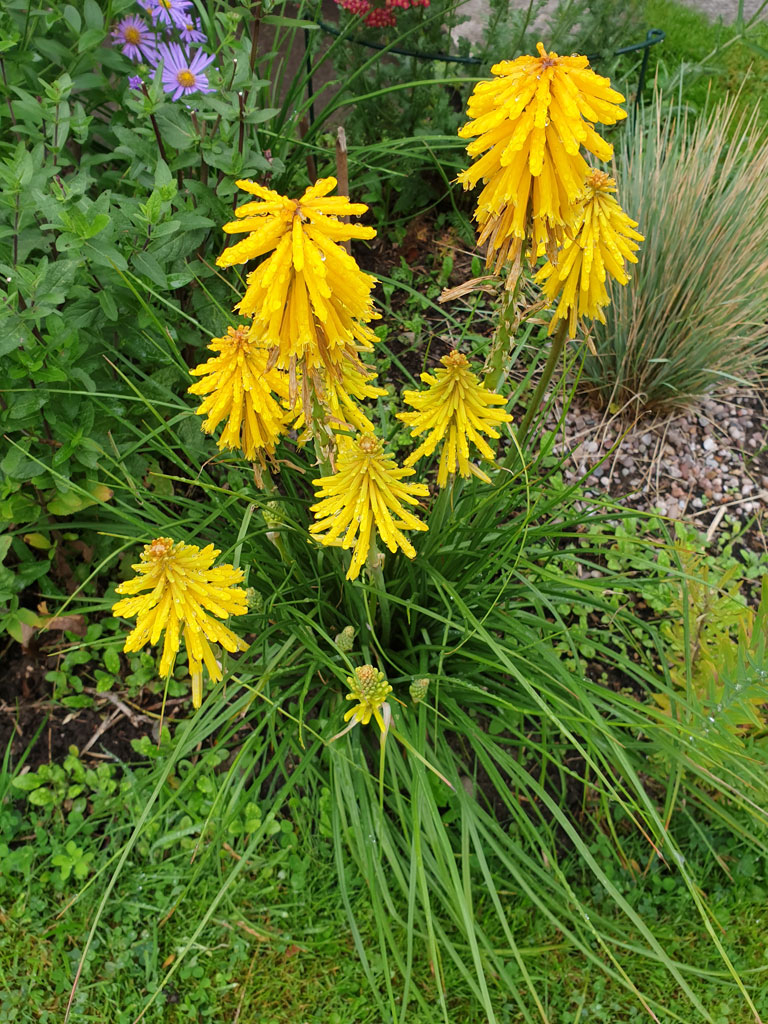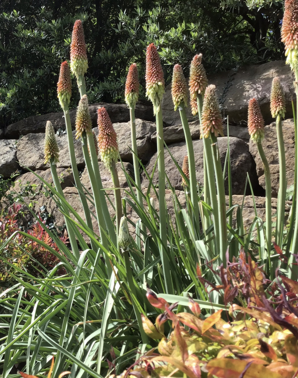 Kniphofia Uvaria, wedged into a crack of soil in the middle of a stone terrace and rarely watered, but it doesn’t seem to mind: