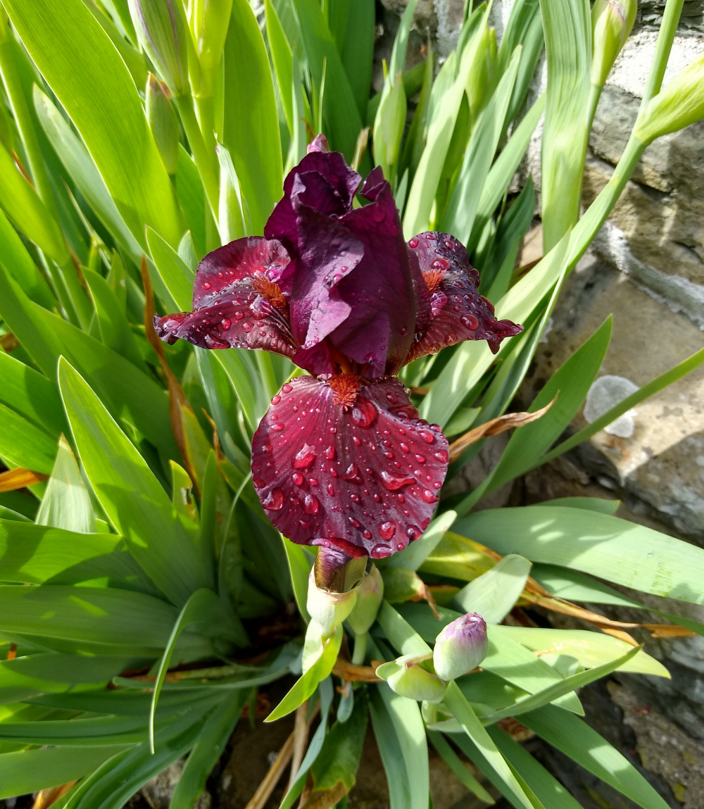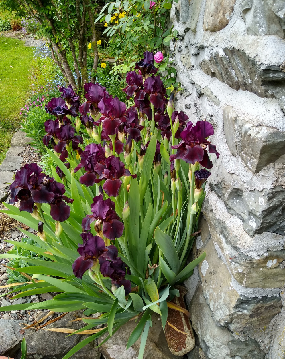 The flowers look almost black in a certain light but like purple stained glass when the sun shines on them.