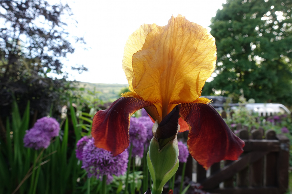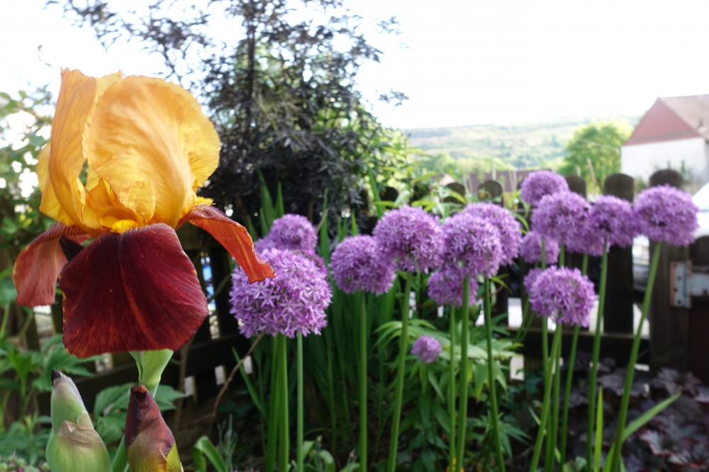 Iris Supreme Sultan with Allium Globemaster in the background