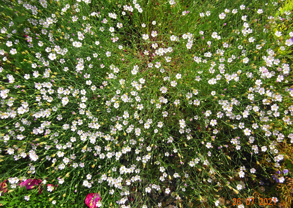 I simply adore this plant... if you like Gypsophila then do consider this. It's evergreen, reverting to a tufty grass in winter. By late June it's ready to flower and it continues until October. It has a light footprint and can be used as ground cover amongst roses.. It demands sharp drainage, sandy, rocky soil, being a native of the Balkans and northern Greece. It's been hardy here for many years but I do not know how much it can take, but I can't imagine growing it on heavy clay.. You can pinch off little tips of growth, plant in the soil and in no time you have a new plant. It also seeds itself close by..