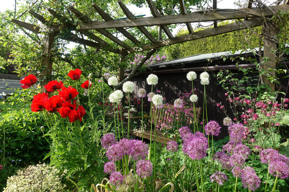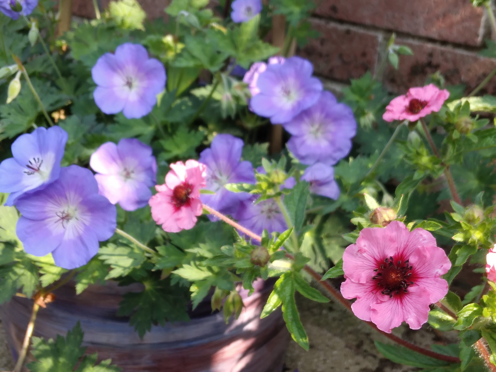 Potentilla nepalensis Miss Willmott (with Geranium Rozanne in the background). I love this Potentilla, as do the bees! It flowered really well, I cut it back in August as it was getting very leggy and it had a very good second flush.