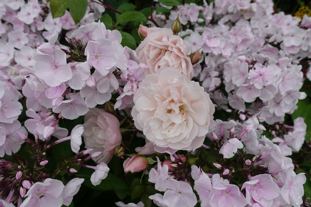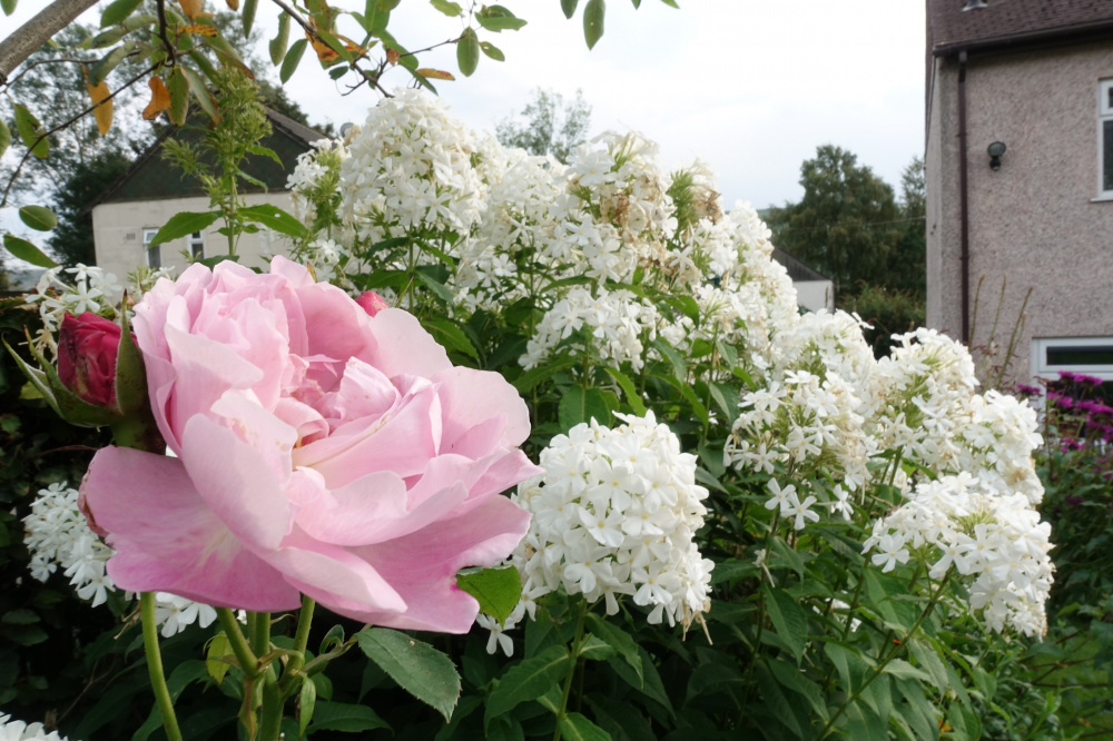 Phlox Monica lynden bell with Rosa Generous Gardener .