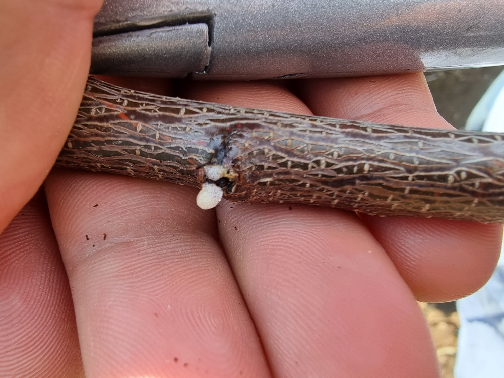 Hello, I have a young 2yr old apricot tree and on some of the buds it's oozing throfy white bubbly stuff. When I did a cutting at the top it was bubbling liquid. Best I can describe it is like washing up liquid. When you touch it ,it has some stickiness to it.