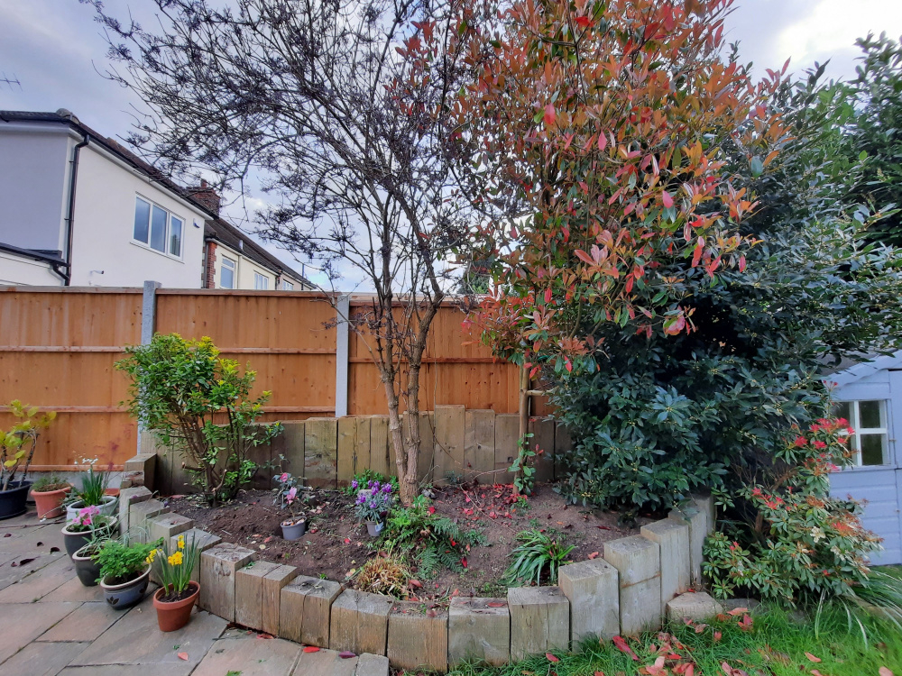 As you can see, a lot less busy than the other areas - my wife attacked it a little today and I attempted to prune the (is it also a Laurel?) at the front, quite a bit). We've got two plants we intend to put in here, and also discovered what I think is a nice tree fern.