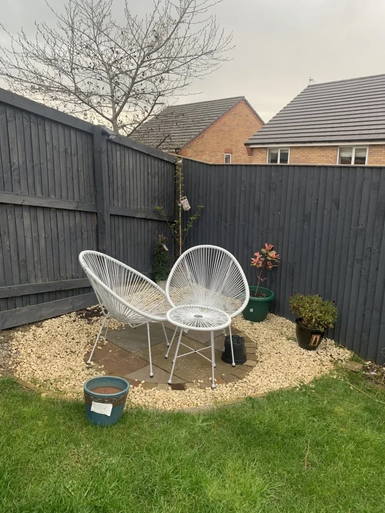 At the back we had a patio put down last year and a pergola and as the garden goes slightly downwards we tried to do something with the far corner but it didnāt go to plan so we now have the area pictured above. Iāve bought a cherry blossom tree and jasmine and am hoping to transform it to be honest. My partner hates even looking at it because it didnāt go as planned. So I guess I just wonder what would u do? Iām hoping plants/flowers can really change the look of it but Iām also not sure where to begin. Iām not bothered about having furniture in it or the gravel I just want it to look as lovely as it can.Thankyou for reading all this!