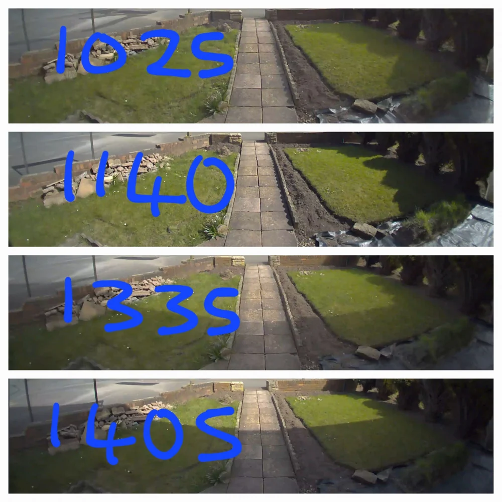 I have attached an image with 4 different times for my front garden.