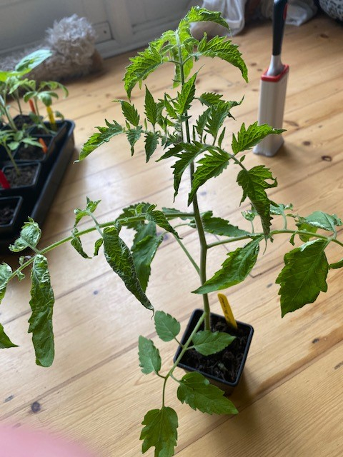 I don't think the roots are going round and round. I gently pulled one plant out of it's pot to have a look. I will pot them on anyway tomorrow. Tomato plants do usually seem quite tolerant to a little root-boundness for a limited amount of time, though, in my experience.