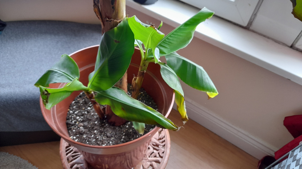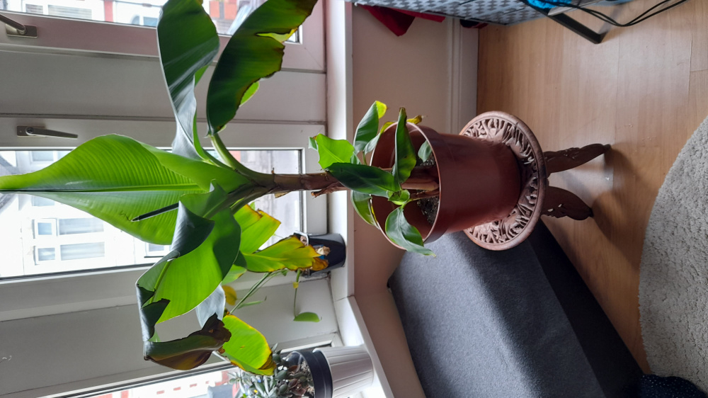 So I am new to this forum and have had my dwarf musa (which I bought from tesco by accident but honestly I love it and have always wanted one!) for almost 2 years now, its been pretty happy and growing loads! There are 2 healthy pups, there were two smaller ones but unfortunately as the plant grew and the larger pups I don't think they got sufficient light and one died. It was happy where I moved it, but it hasn't been doing too well the last couple weeks - I forgot to use feed for a while but I cut off the really sad leaves and gave it a feed the other day, however it doesn't look too great.