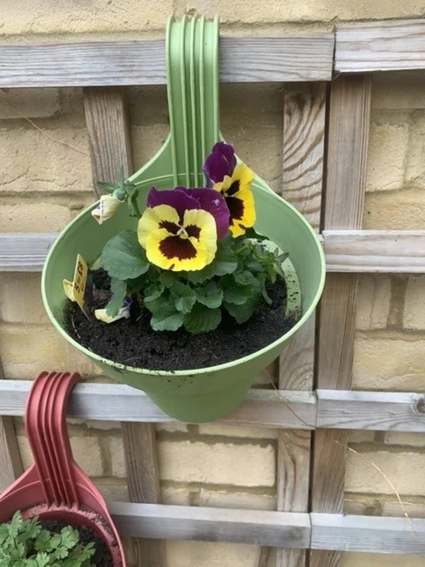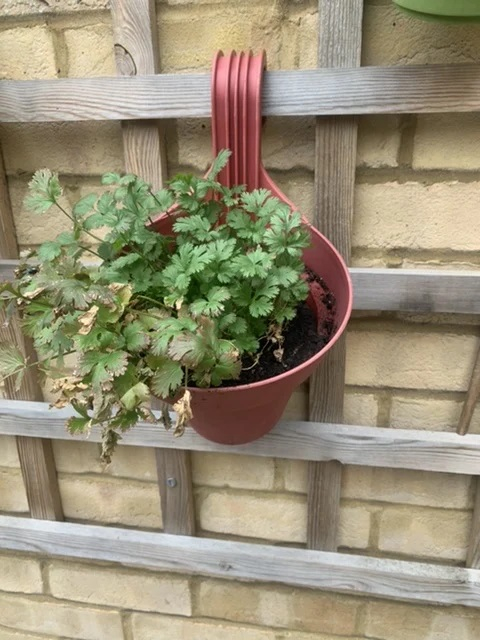 "...this hanging pot is perfect for adding elegance and colour to display your plants on your balcony" I must say I totally disagree with this commercial blurb. Not my notion of "elegance". But... each to their own.