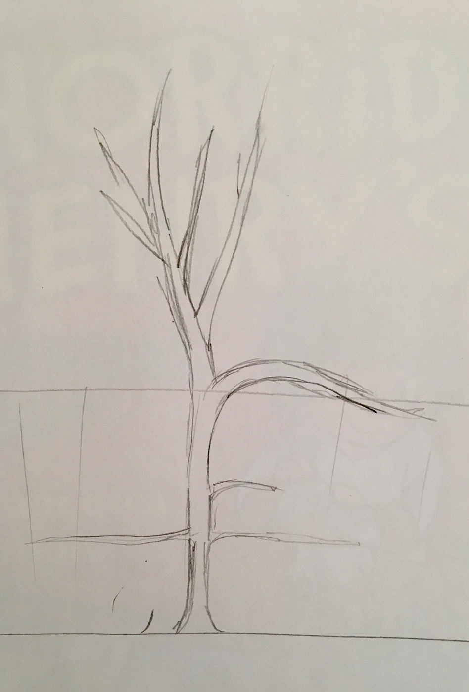 I will attach a drawing - but essentially, it has a few horizontal arms but a lot of the growth is vertical.