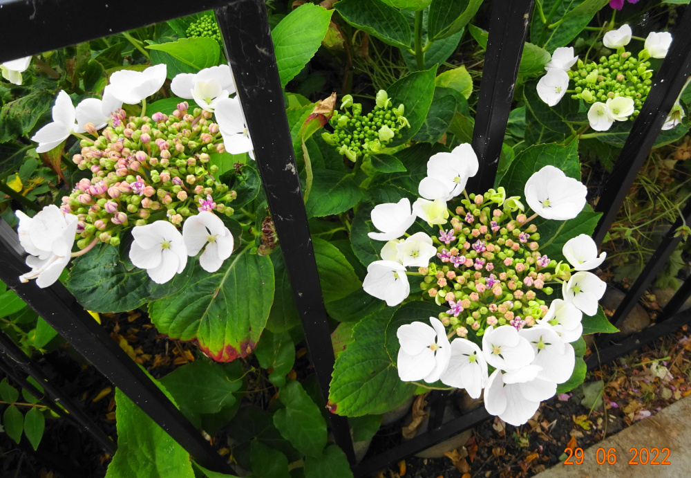 Hydrangea 'Libelle', is a rather nice white lacecap...