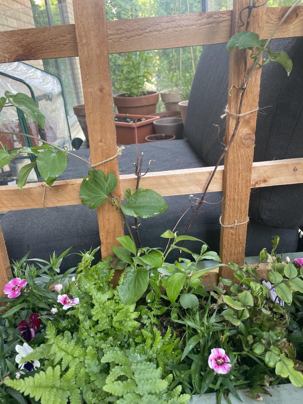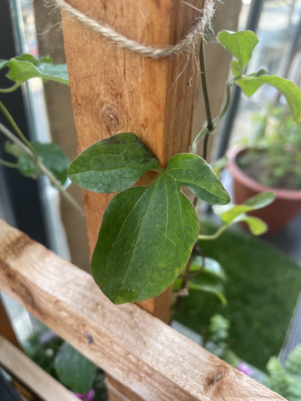 The variety is Clematis 'Pink Fantasy', its the second one I've grown in this container, the first was planted back in Autumn and quite quickly the leaves died, I assumed due to it starting to go dormant for winter, but come this Spring it hadn't taken off and when I dug back to the roots they had rotted - assuming due to sitting damp most of Winter. When planting this new one I did use new soil and gave a generous helping of Clematis feed but I did have to use about 10% of the old soil as I had run out of new soil.