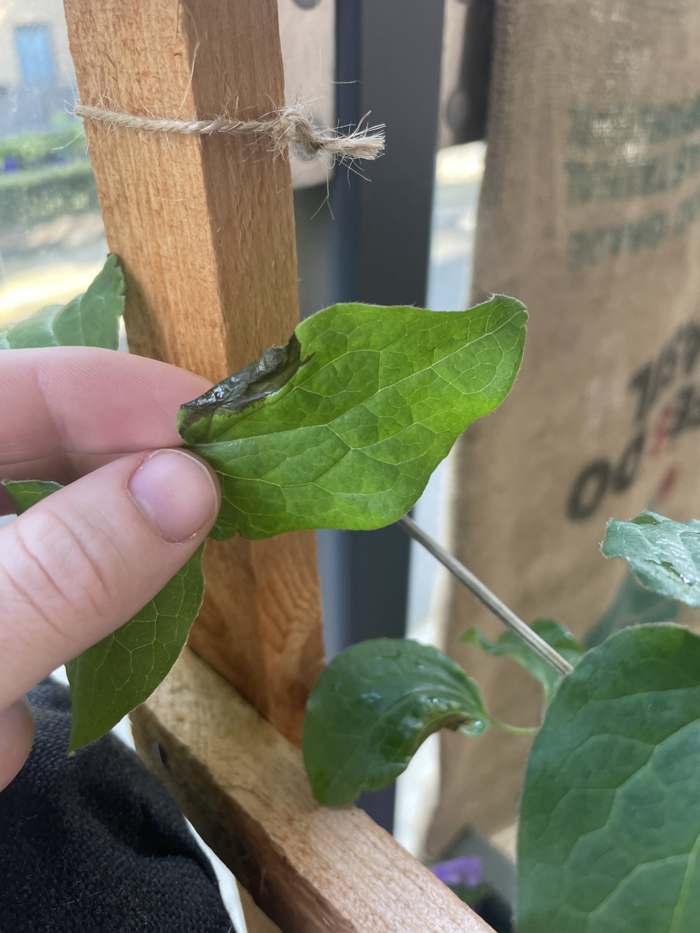 I've checked on it today and it looks plenty happy so I must've had a mild bit of panic! It's been windy in London for the last several days so the logical conclusion is its just a bit of wind burn - as you said BlueBirder I think it must be from rubbing on the trelis.