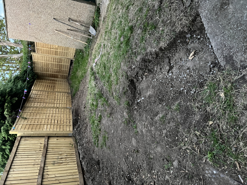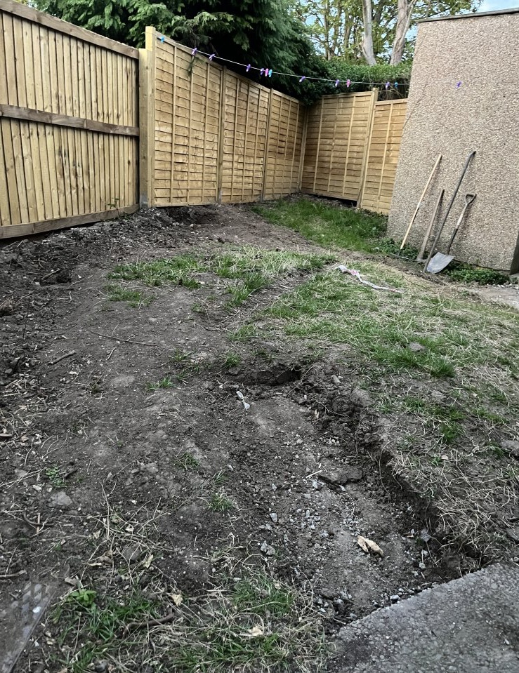 Good evening all. Any help or knowledge regarding on how best to tackle this section of my newly acquired garden is much appreciated. I think the picture shows that it’s slightly raised in the middle, I was thinking of putting sleepers around the edge where the path is then breaking down the soil to try and level it out as much as possible. Where the back fences are there are lumps of concrete from previous fence posts, I’m unable to take them out because the fence is the neighbours. So was thinking of creating some kind of border here - but again any suggestions is welcomed! The garden goes around to the side of the house so was going to have this bit grass, then create a patio round the side. Thank you in advance. 0
