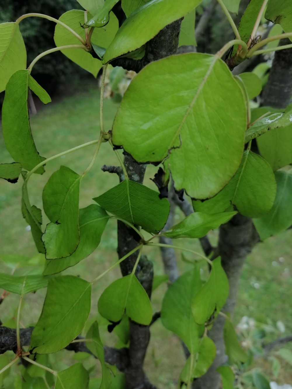 Hi, could someone advise on what's going on with my pear tree. Last year almost all the leaves were edged in black or had black markings. I put it down to it being exposed to sever wind. It did make one pear last year, it was lovely. The pear tree next to it looks okay and is covered in buds.