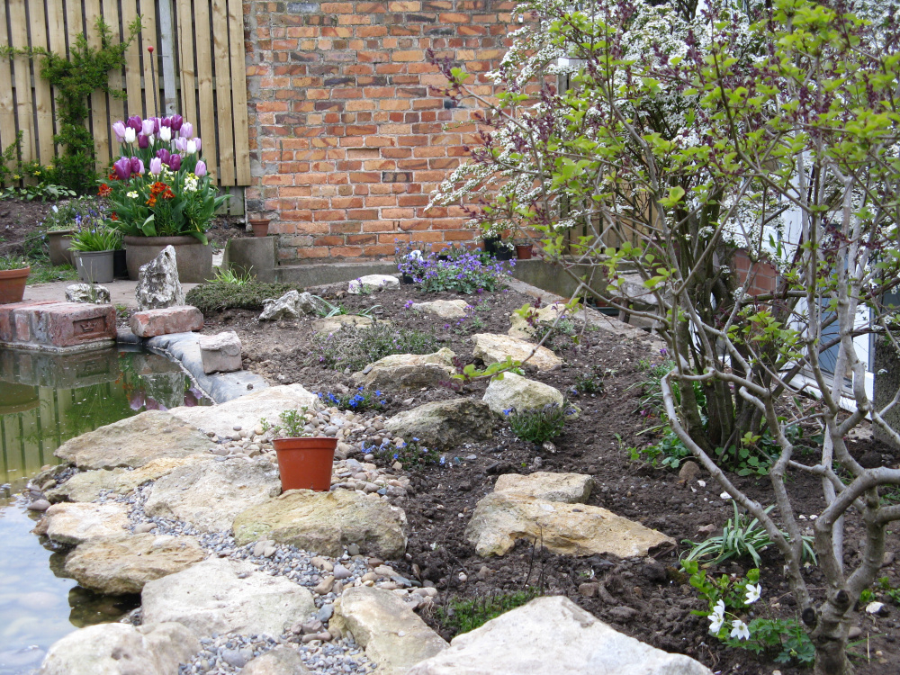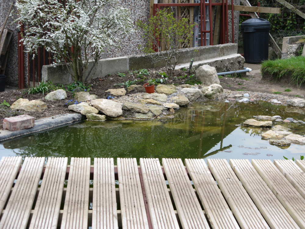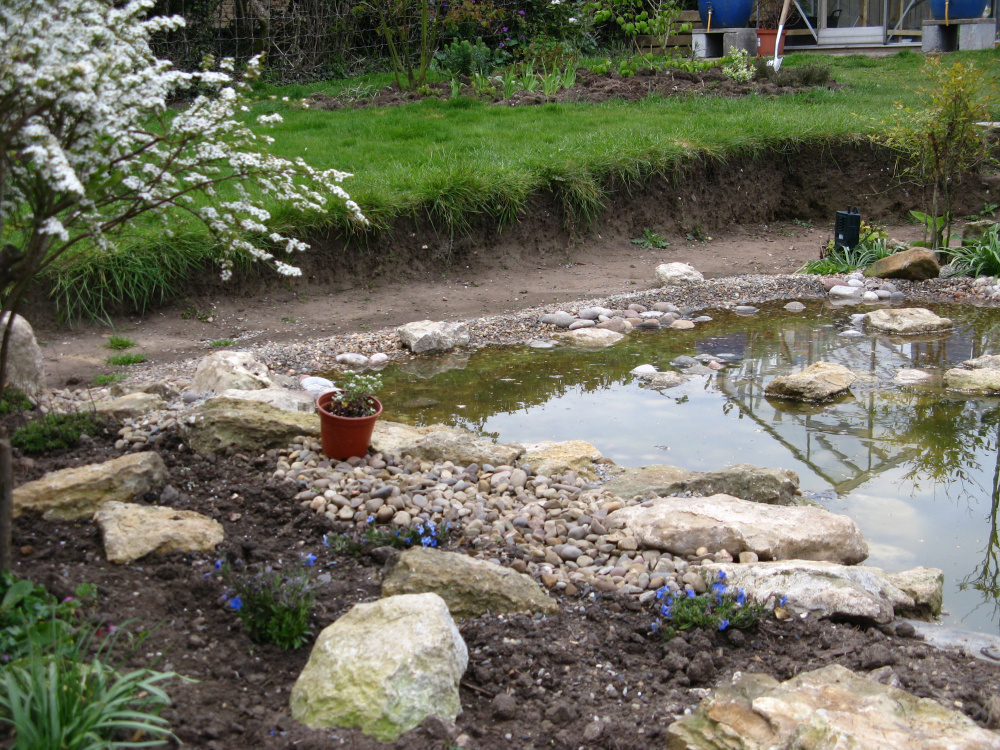 I'm trying to create an area at the edge of the pond that smaller birds can get into undercover to bathe and drink.