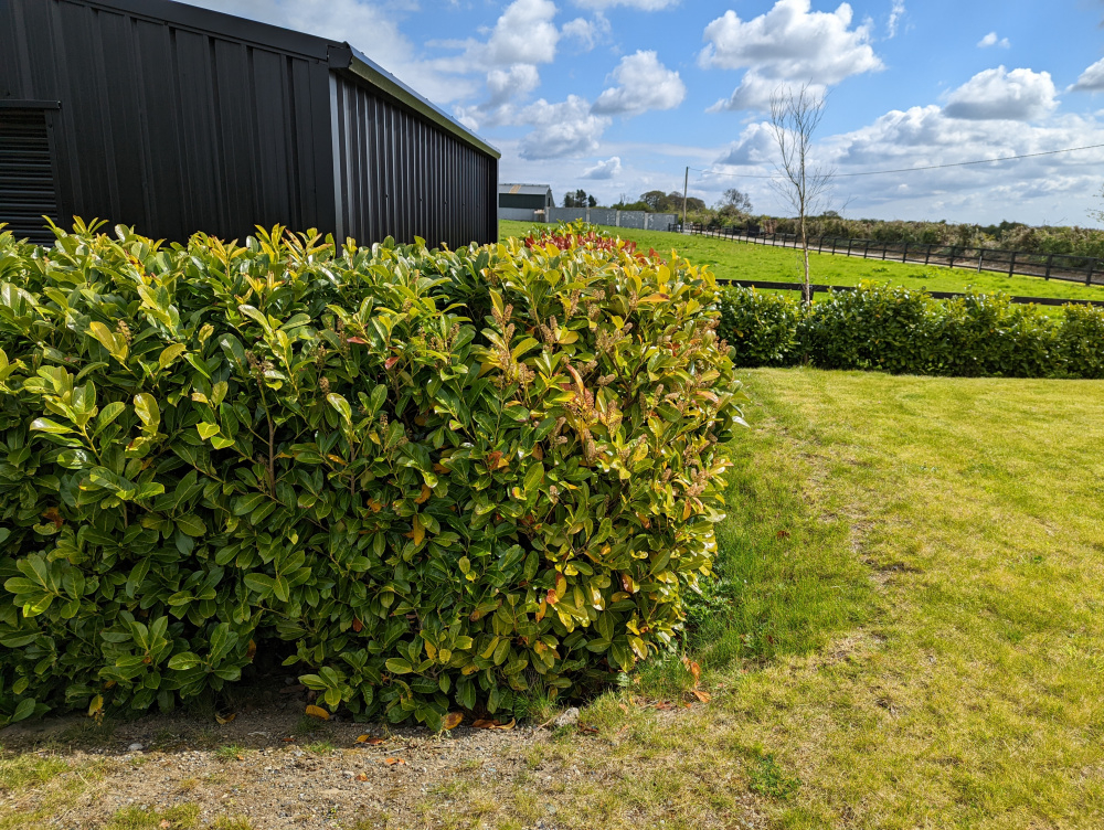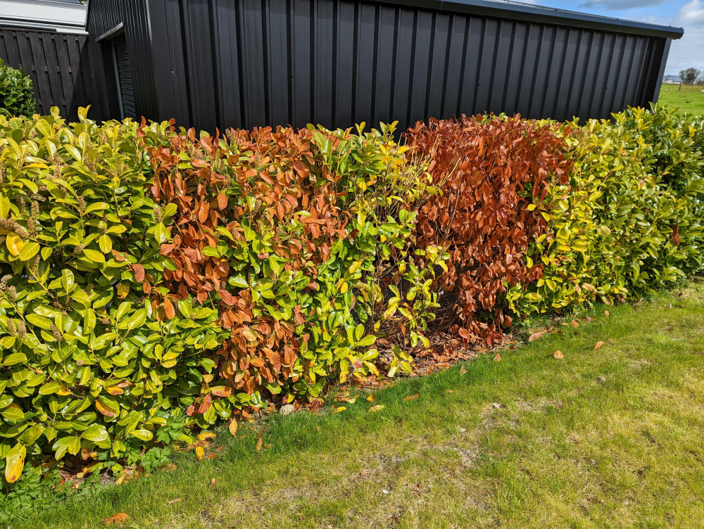 Hedge appears to be water logged Vs healthy section, too much water?