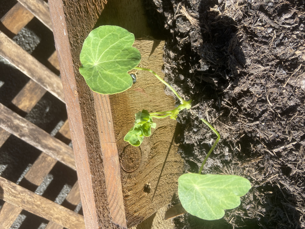 Hi there!My young nasturtiums (and a few small broccoli seedlings) started off well but have begun to grow in a sort of stunted, ‘scrunched up’ manner? It’s very strange… could anyone please advise what the issue might be? The nasturtiums are in a large planter with some small broccoli plants, radishes and young spring onions. Please see pic!