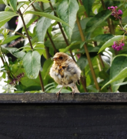 It doesn't behave at all like a robin. It's very young and still has some of its fluffy feathers. It runs about on the ground and along the side of the fence like a little mouse.