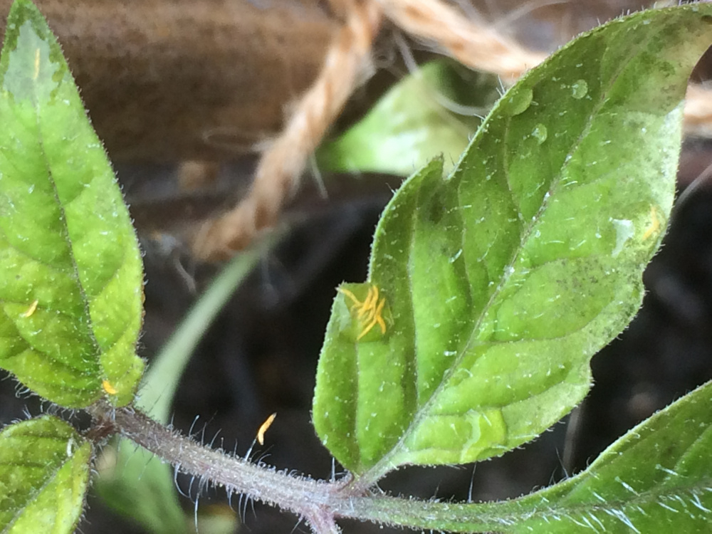 There are eggs or mites appearing on our new tomato plants. Any idea what they are and how we deal with them please.