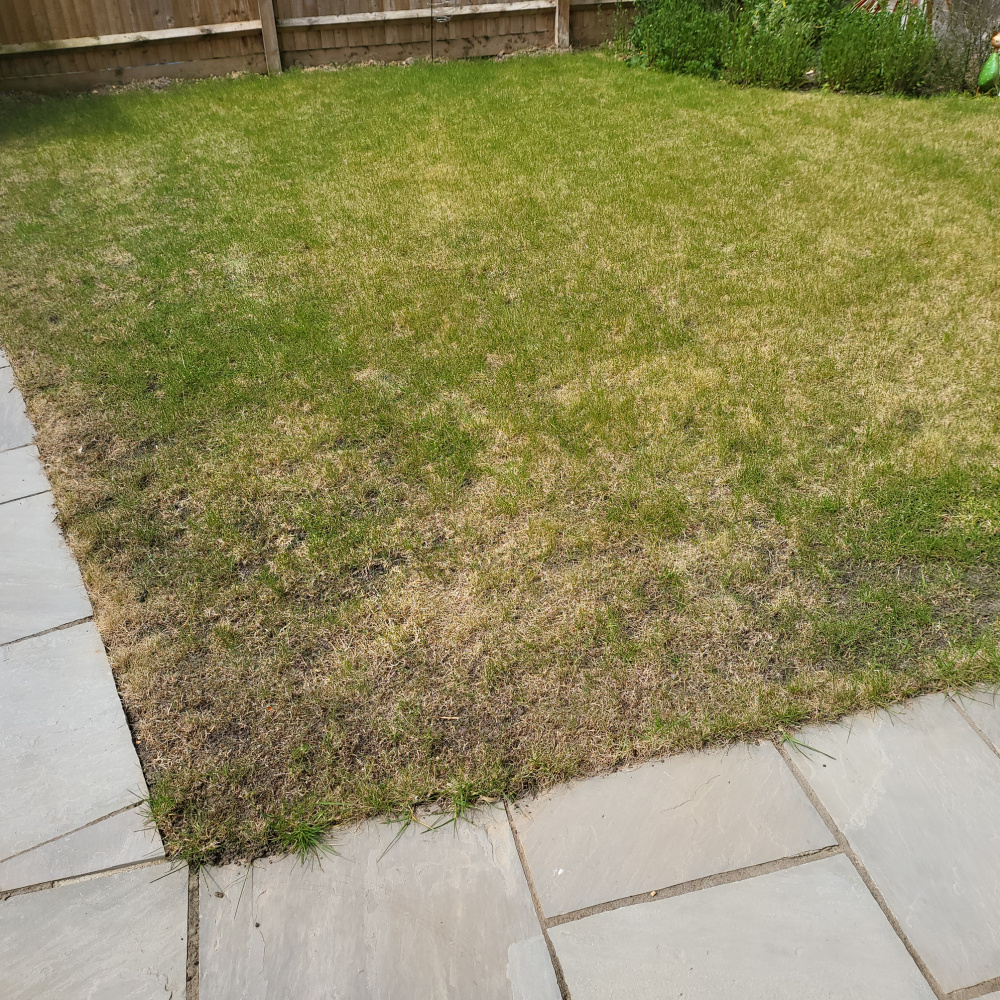 We were extending the patio and at the same time asked for the remaining lawn to be turfed again. They dug it over, added topsoil and laid turf. (This was April last year).