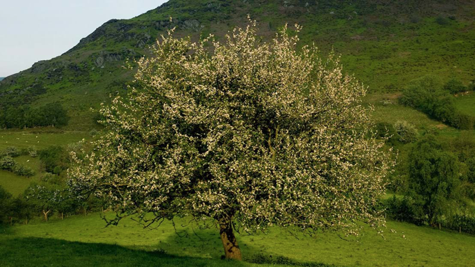 What about Crab apple (males syvestris)? Fantastic native tree. White flowers with a touch of pink. Valuable to wildlife. Symbol of love and marriage and great for making jelly.