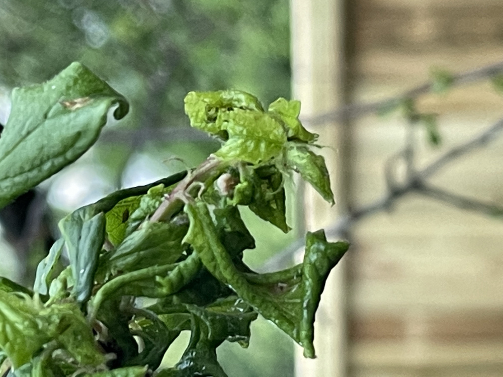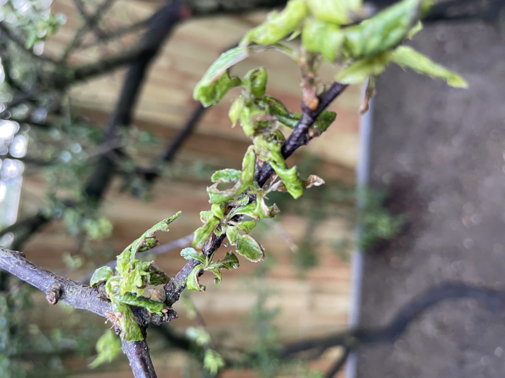 I have some mature blackthorn trees that are looking decidedly unhealthy. They bloomed fine last month, but now the new leaves are shrivelling up. I’ve looked for pests and seen what may be some beige coloured creatures, and there does seem to be stickiness too.