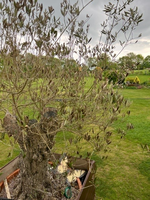 I have two large Olive Trees in pots, this one is going brown, the other one is