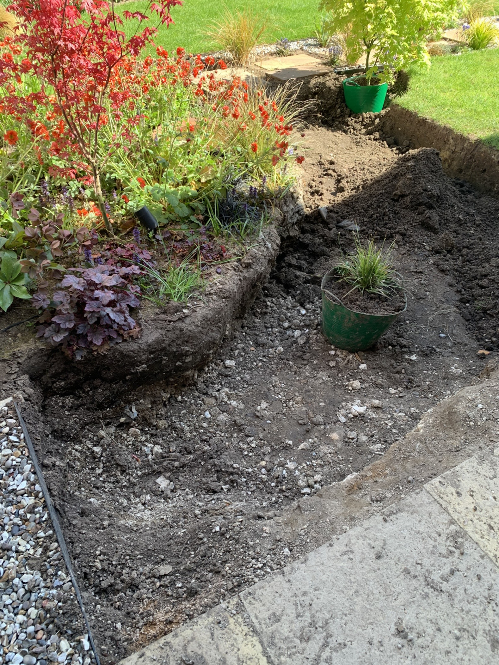 When we started the work, over the course of 2 weeks one small area where we had tried to go even deeper (5 feet) but gave up when we realised it wasn’t going to get any better - the area is naturally at the bottom of the land as it slopes west to east and north to south - filled up with water from the surrounding soil, despite no rain. We ended up at c15 large gorilla buckets worth of water but no more has appeared since.