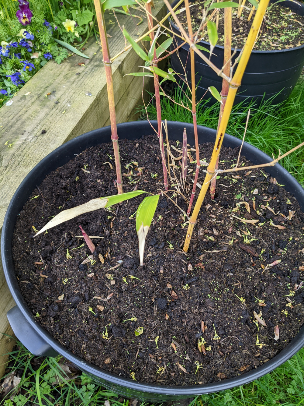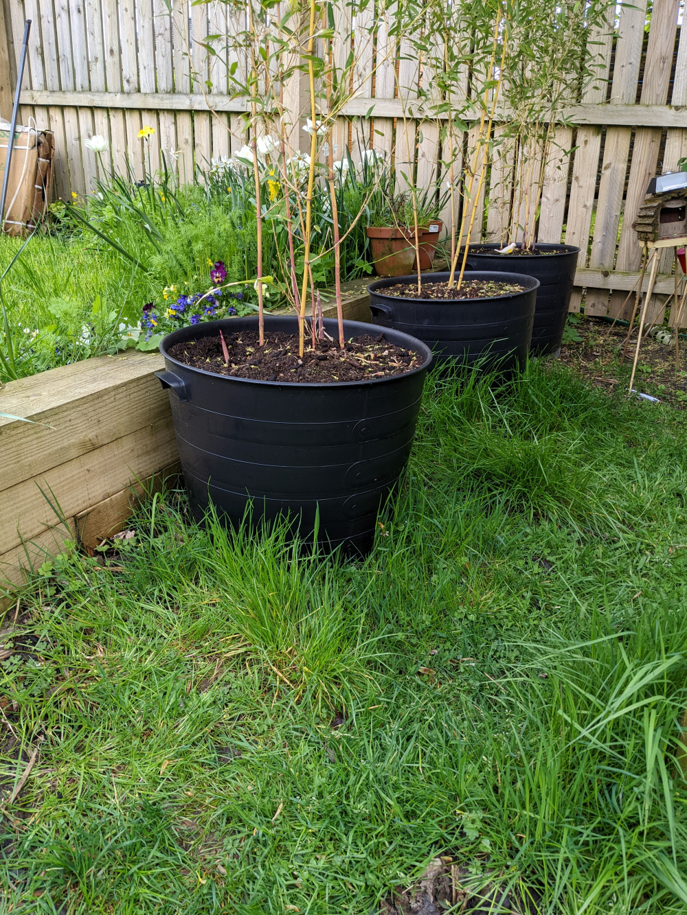 Because of their position in a windy site, your bamboo will need regular watering to ensure that the compost is kept moist, but not waterlogged. The pots will also need to be elevated to ensure good drainage.