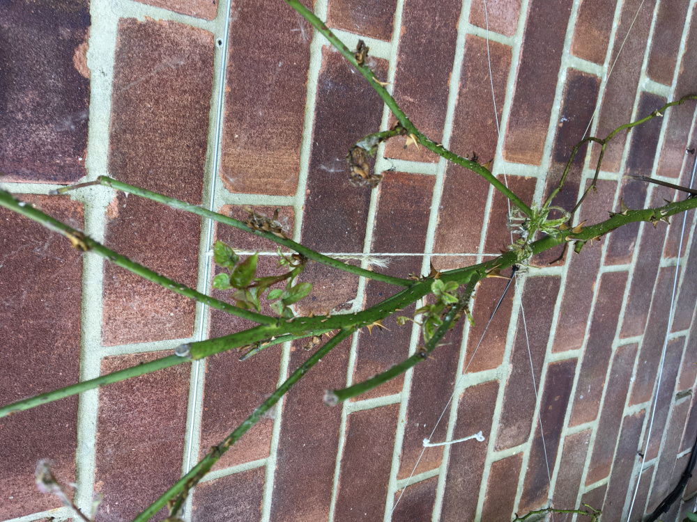 I purchased 2 climbing roses last year to go in front of the bungalow. They settled in very well and produced good growth and tonnes of flowers. I’m late to garden this year after an accident left me immobile for a few months. Moving on when I could get outside and see what I’d been left with both plants had little white bugs over them. I blasted them with soapy water spray which actually worked. One is looking in good condition but it’s neighbour; even to my untrained eye looks decidedly dodgy. However the more experienced amongst you may confirm or offer advice.