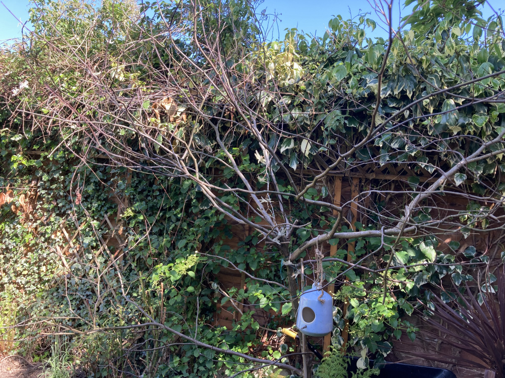 I hope someone can help me. In the first photo, bottom left, their is a beautiful purple leafed tree. This year it has died- no idea what caused it to die.0