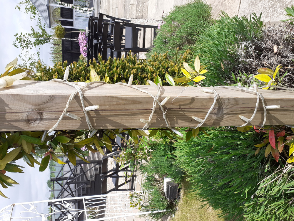 Hi, I'm looking at training a climbing rose up the pillar of a pergola but because of the fairy lights attached to it I'm not sure it's going to be practice to train the stems around the pillar. There is a vertical support in place from a previous clematis and am wondering whether with a stronger wire it will be suitable to train the rose up this? Thanks.