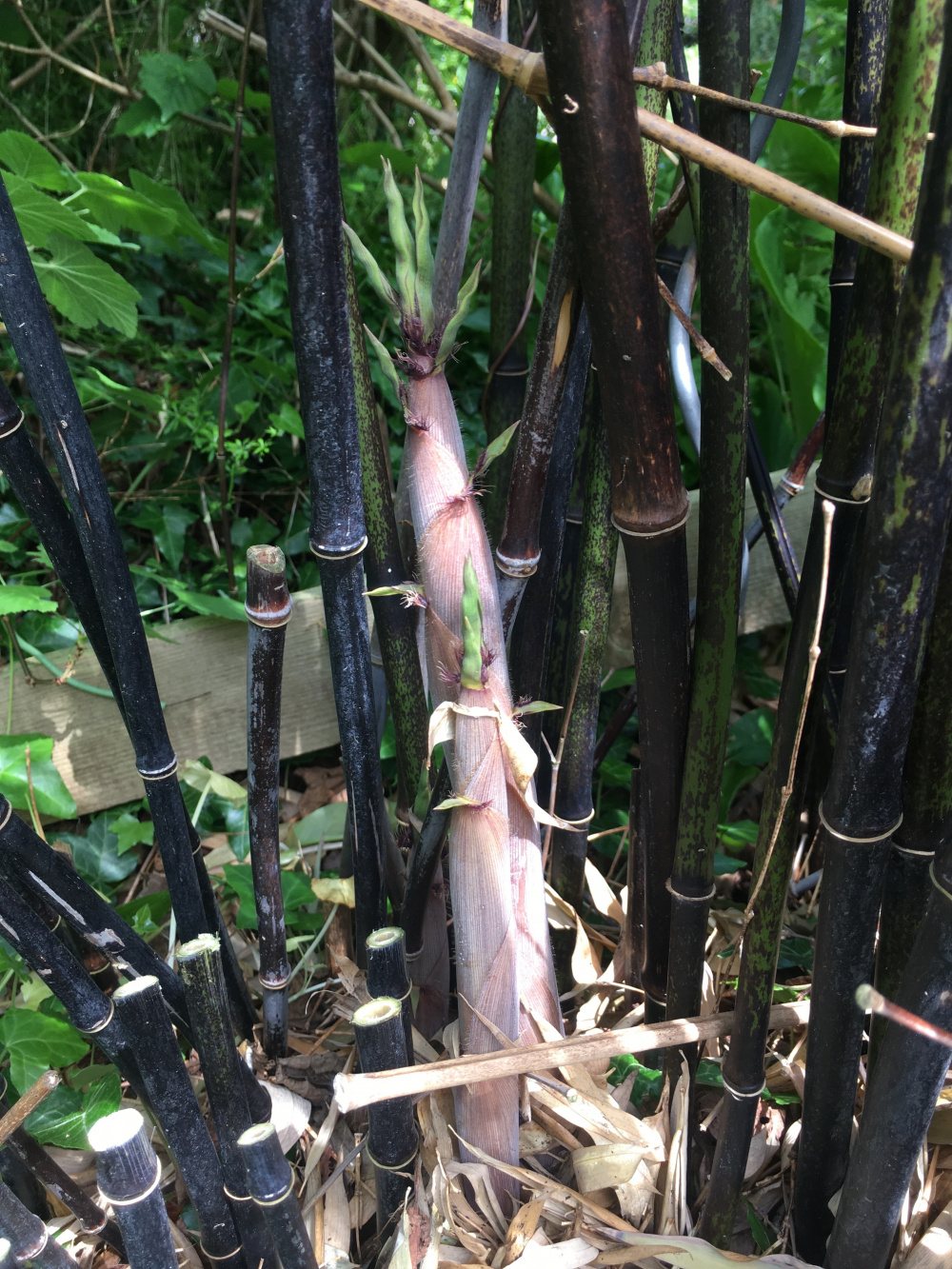A friend has bamboo in her garden. Yes it's invasive, she knows and she's sorting that out but some pieces that come up in her lawn look like very thin green bamboo canes that I presume will eventually thicken to create the classic bamboo cane - these look normal, just like thinner versions of the fully grown canes.
