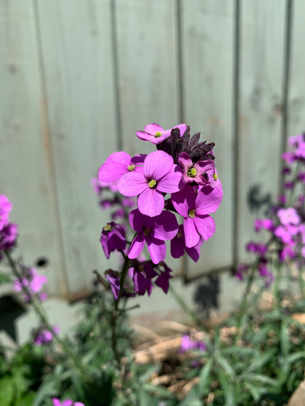 Perennial wallflower, Erysimum Bowles's Mauve - it flowers nearly all year and bees love it!