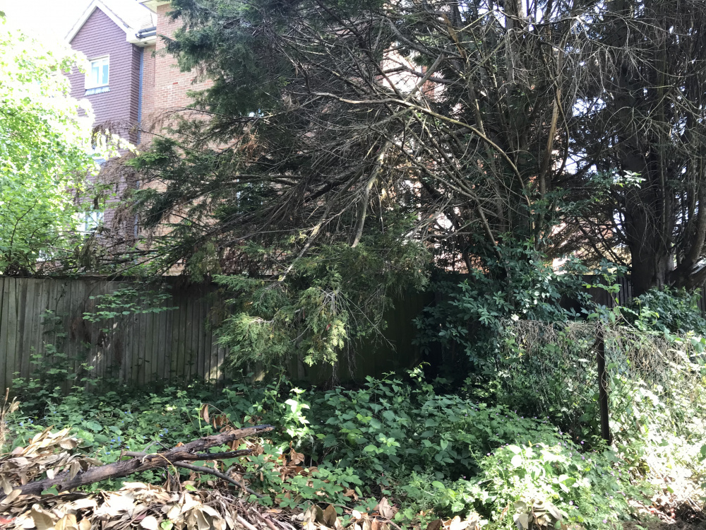 The very back of the garden needs a complete make over. The area is about 10 m wide and 7 m in length, I am only talking about very end of the garden. I have tree at back and next door has conifers and a massive eucalyptus. The garden is north facing in London. Gets some sunlight but not much. Currently needs a clearance done with old tree branches and leaves plus weeds everywhere (I will need to find someone to do the job for me). The whole width of garden has a concrete base (10m x 5m), I believe the previous owners had some out buildings, I also have bare patch with no grass, nothing grows there, i too have a tree. I have no idea what to do at the back. Not much light, leaves falling all the time, big chunk covered in concrete, bare patch where nothing grows. I suspect the tree I have and next doors eucalyptus sucks up all the moisture. Sadly whatever I have to do must be on a limited budget, pension can only go so far. Any thought and ideas would be welcomed, looking for low maintenance, happy to have some container plants but not sure what else I can do. Thank you very much.1