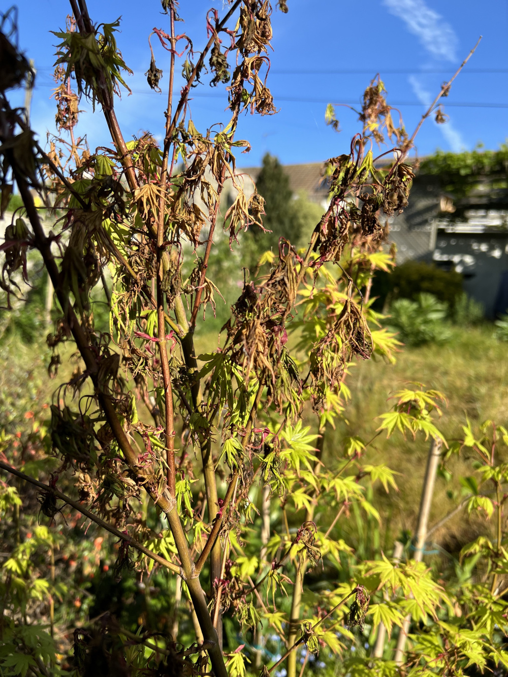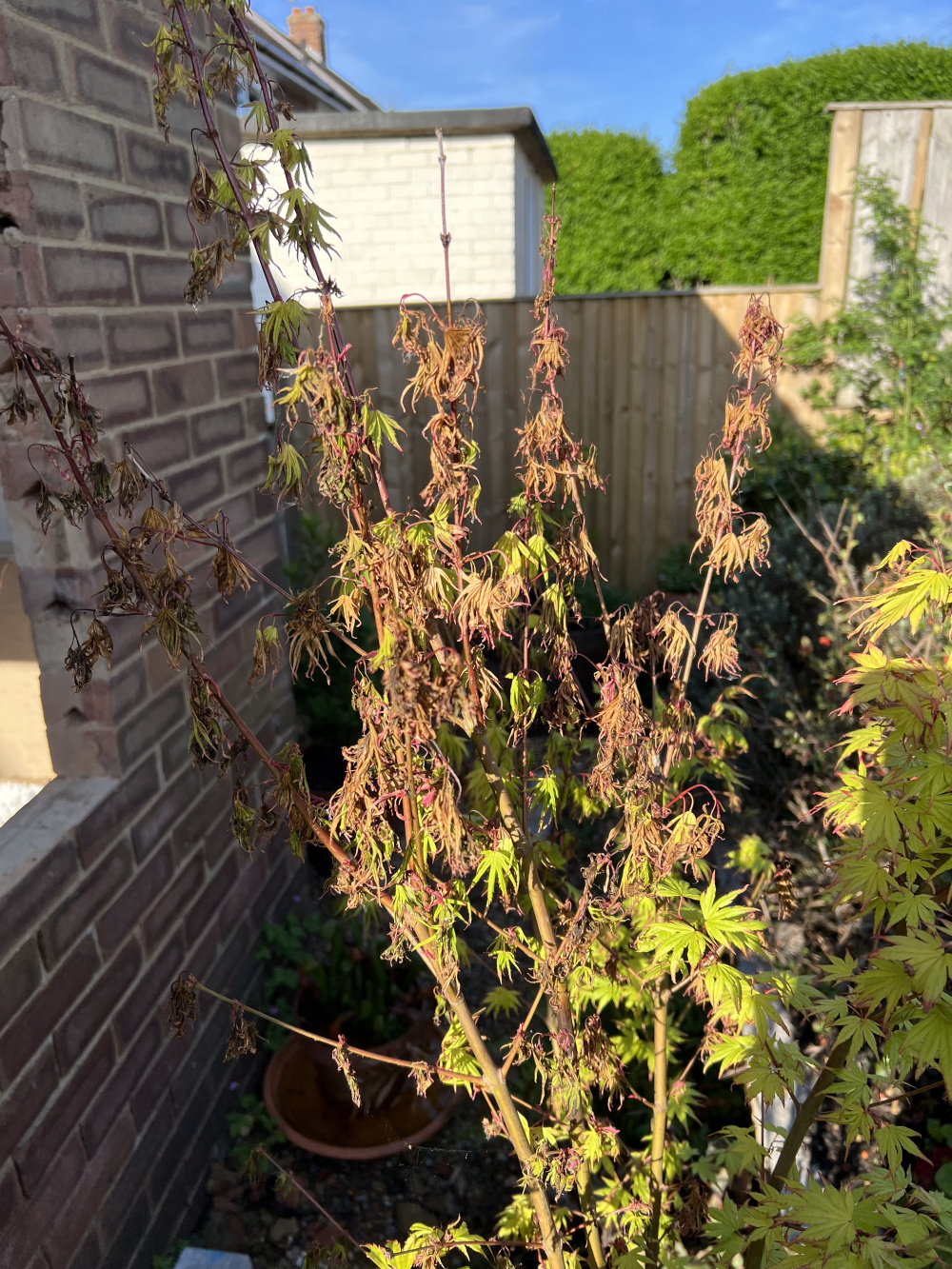 We bought a beautiful mature orange dream Acer last autumn. It's looking very sorry for itself now and I really fear we may lose it. I've read other discussions on Acer but it's not clear to me still what the problem is. There are some caterpillars on it but I've only seen those recently so I'm sure that's not the only problem. We have soil to pot it on but haven't yet (it's still in its original pot)