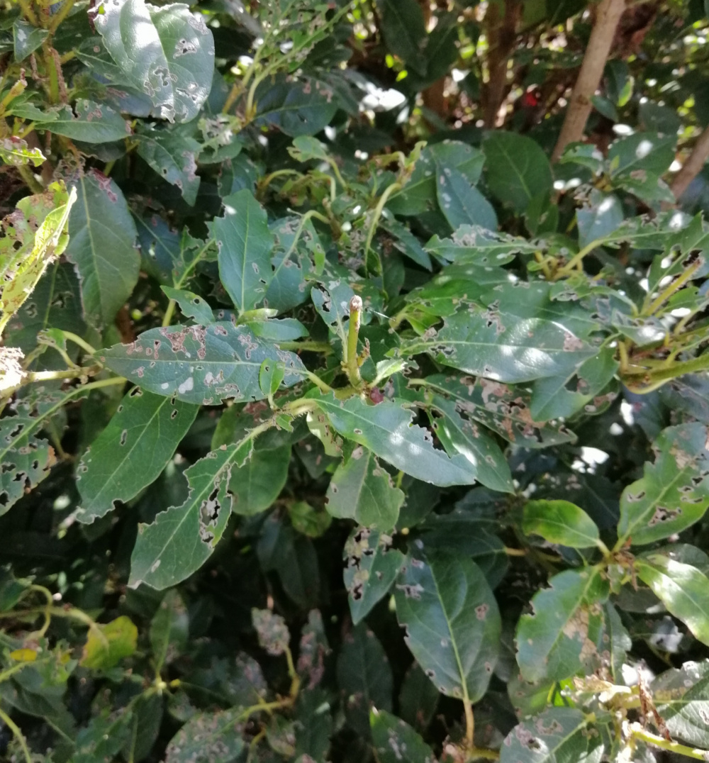 Can you please help identify what is eating my plant and what I can do about it. Last year I was told it was some sort of beetle and that I should cut the plant back which I did, this spring the plant sprang forth with new foliage and looked pretty healthy but now following the first of rain I see that is being eaten and it looks rusty.