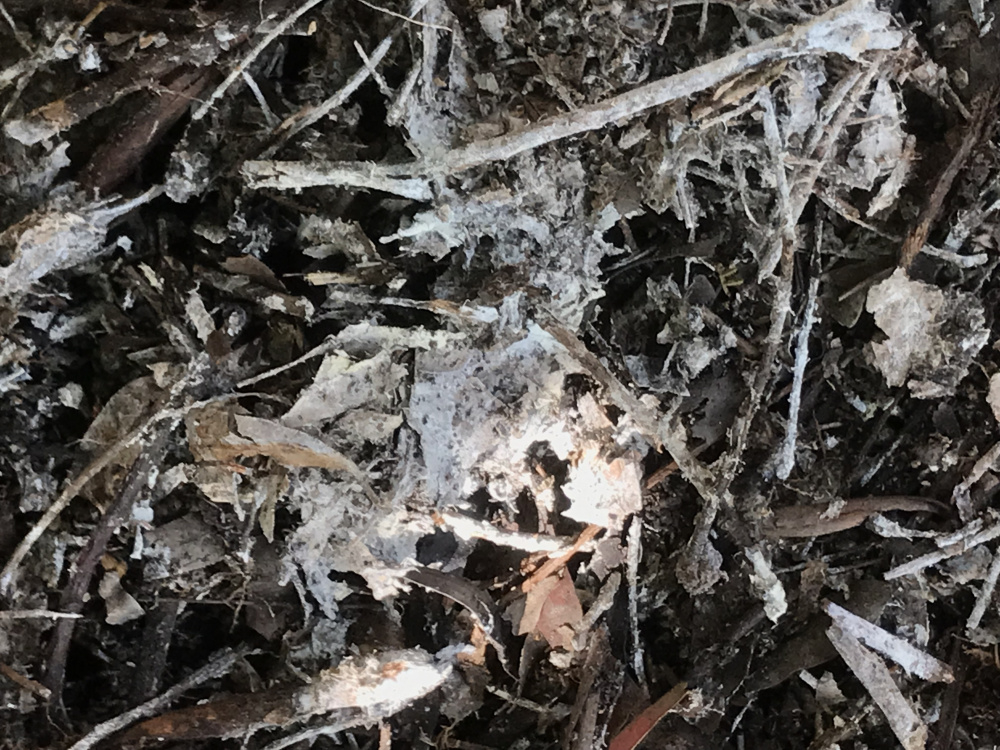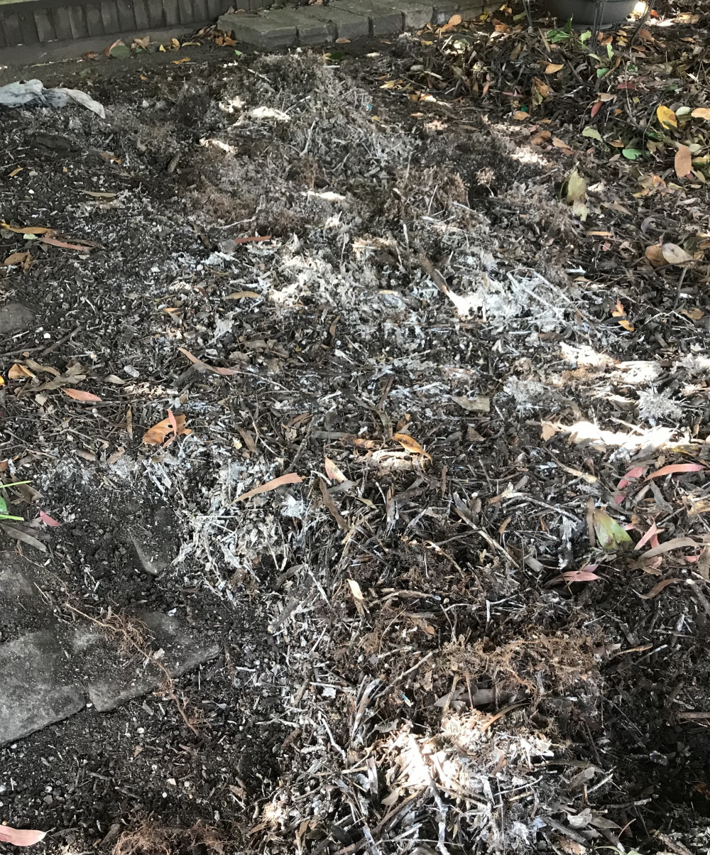 I am clearer up dead leave in a shady part of garden, I got a Laurel tree and notice under the dead leaves, there is white substance, looks fungal. Leaves have built up over the years and sadly neglected. The white stuff is only on one side of the tree, Is there any treatment, do I need to remove the white stuff. Plan was to plant some ferns and hostas around the base of the tree including some shade tolerant plants. Thank you for suggestions.