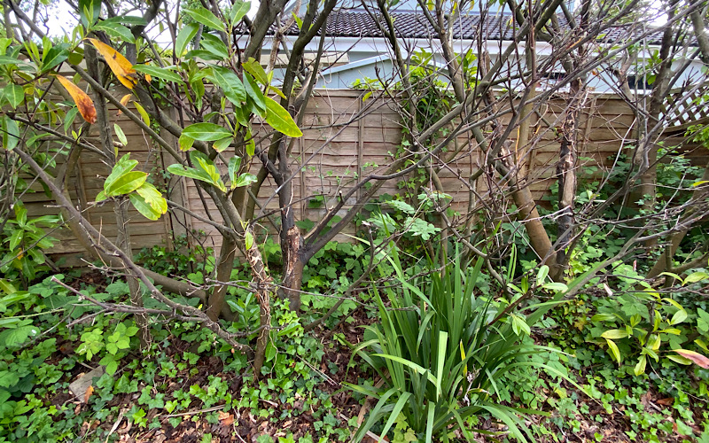 Perhaps I should’ve mentioned, apart from the monkey puzzle, these are all long-established plants and other sections of laurel did fine last year. The only other disruption last year was the fitting of a new gate post nearby this particular section, but I can’t see that having an impact on such a large section of hedge.