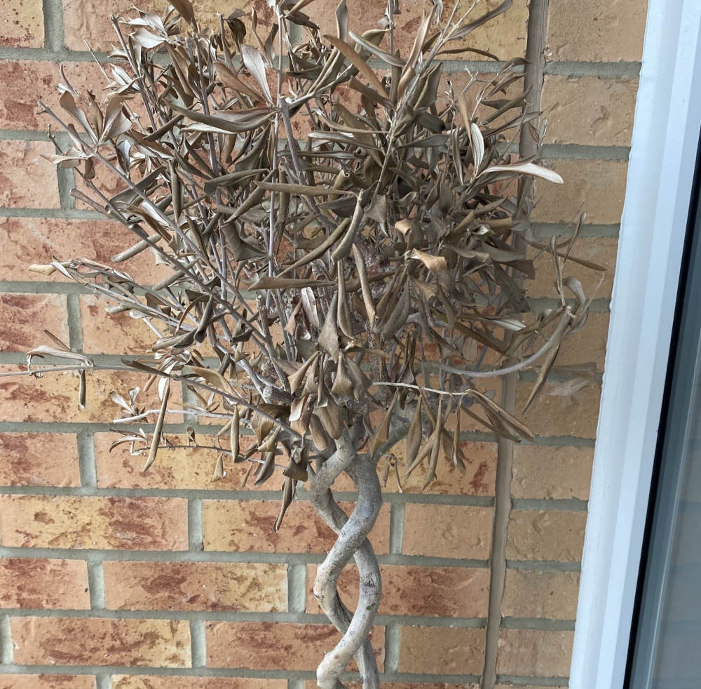 I’ve had this little olive tree for a couple of years. Admittedly, last winter I forgot about it for a long time. It lives at my front door step under a shelter and is relatively protected from the elements. However, I neglectfully starved it of water for a good few months.