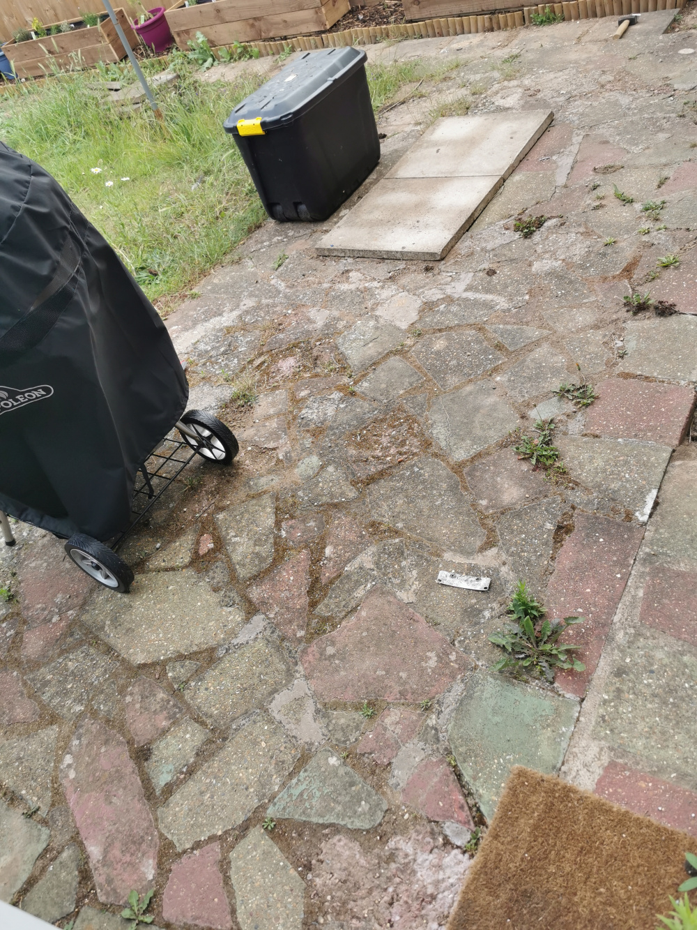 But ours is like the rest of the hiuse when we bought it, run down and not really looked after. It has dips in it, a drain access with 2 large paving slabs covering it.