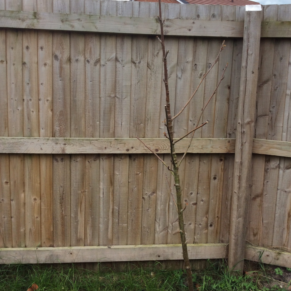 Is it planted directly into the grass? That's not a good idea either. You need a good clear space around it. That helps keep a new tree clear of weeds.