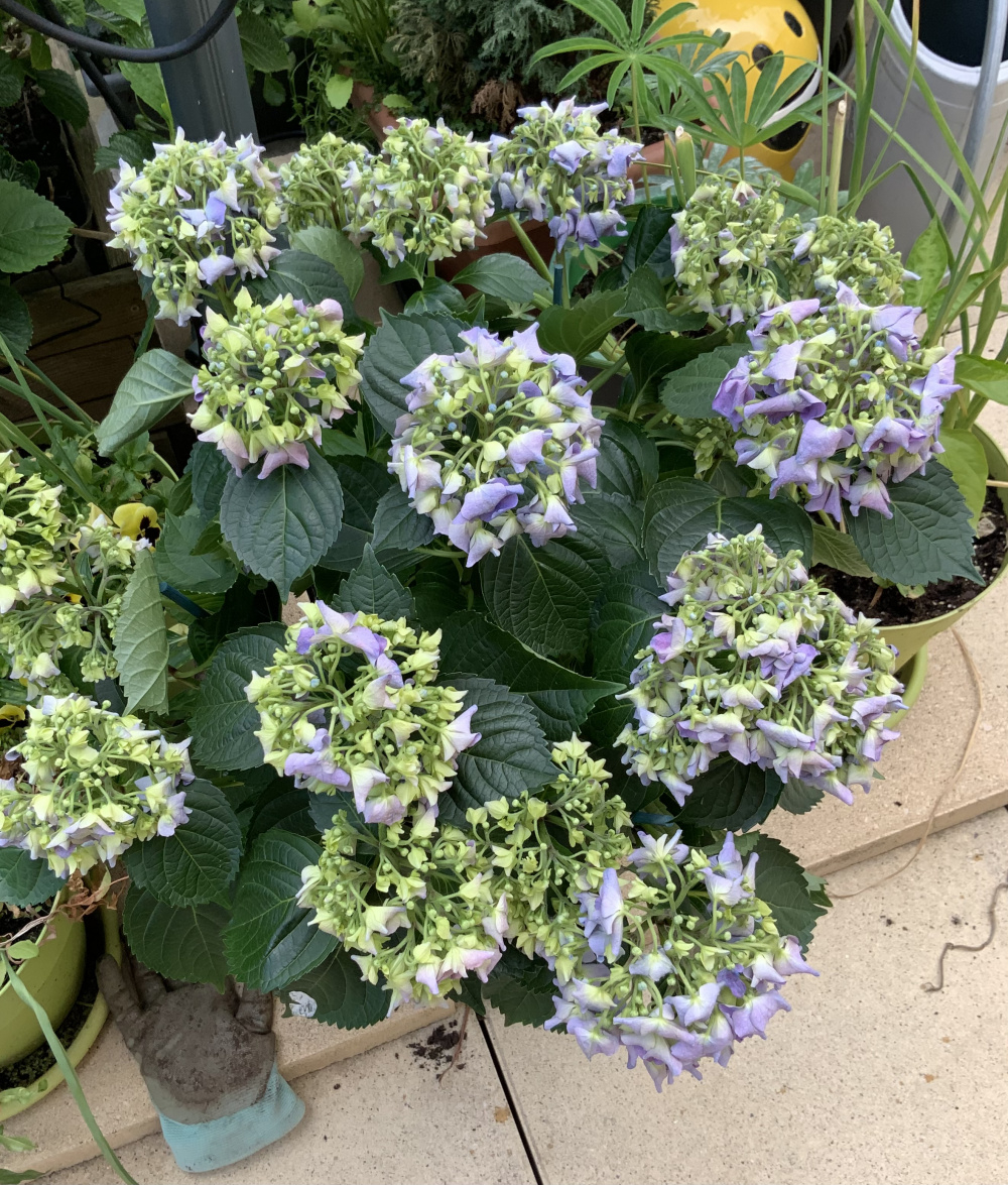 I bought this hydrangea at the market on Sunday and it was beautiful, but is a tiny pot for it’s size. I have replanted in new compost into a pot about 2 sizes bigger, watered well…. But today I came home to very limp flowers and foliage.